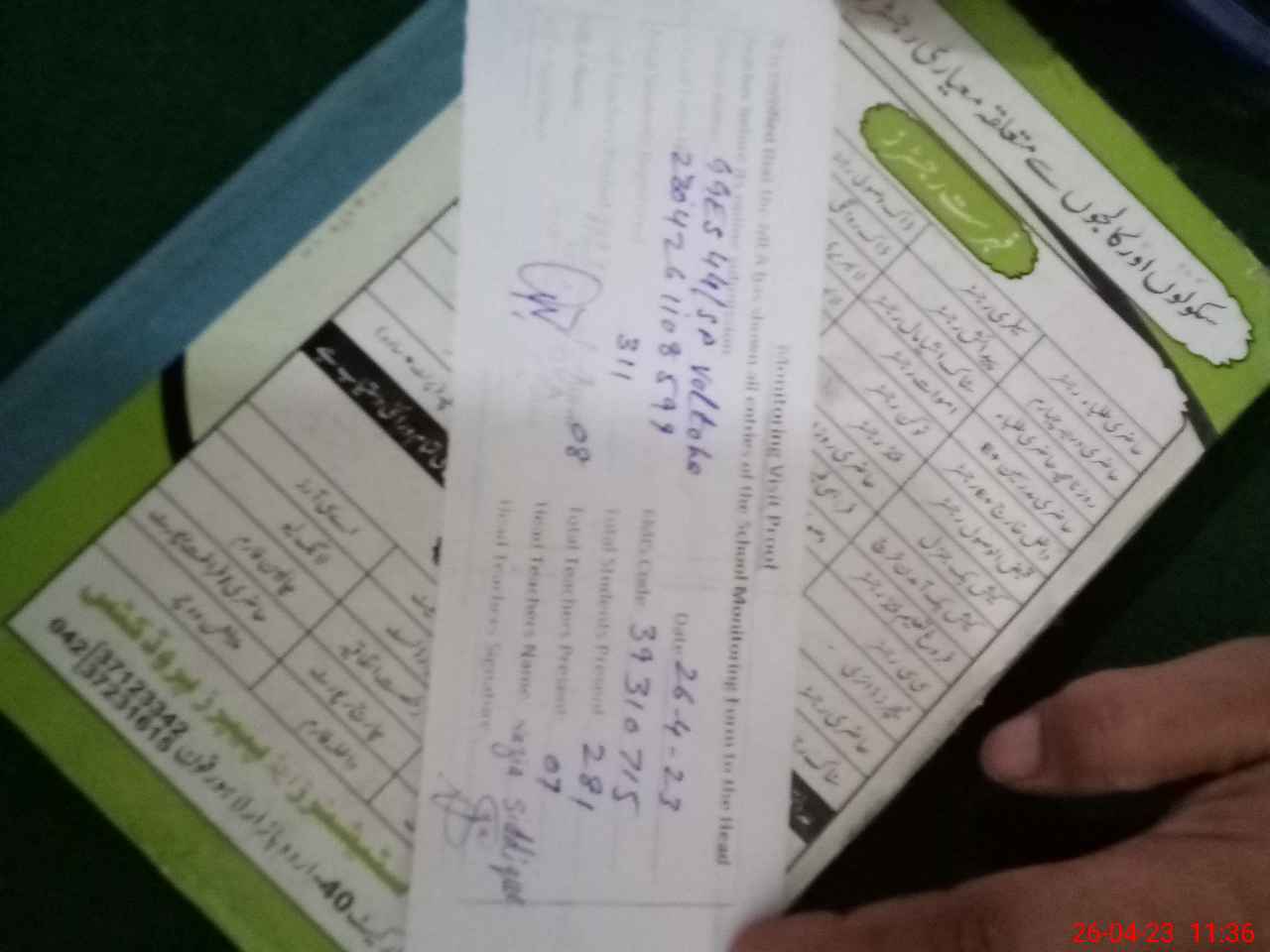 | Attendance Register | Head Teacher | MEA with School | Visit Proof |