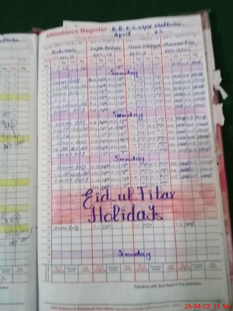 | 35**** | Ai**** Ha**** | SST | Regular | 0 | 0 | 0 | 0 | 0 | 0 | 0 | 0 | 0 | Exam Duty |