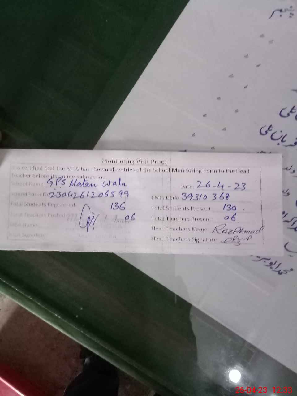 | EMIS Code: 39310368 | Name of School: GPS MATAN WALA | |||