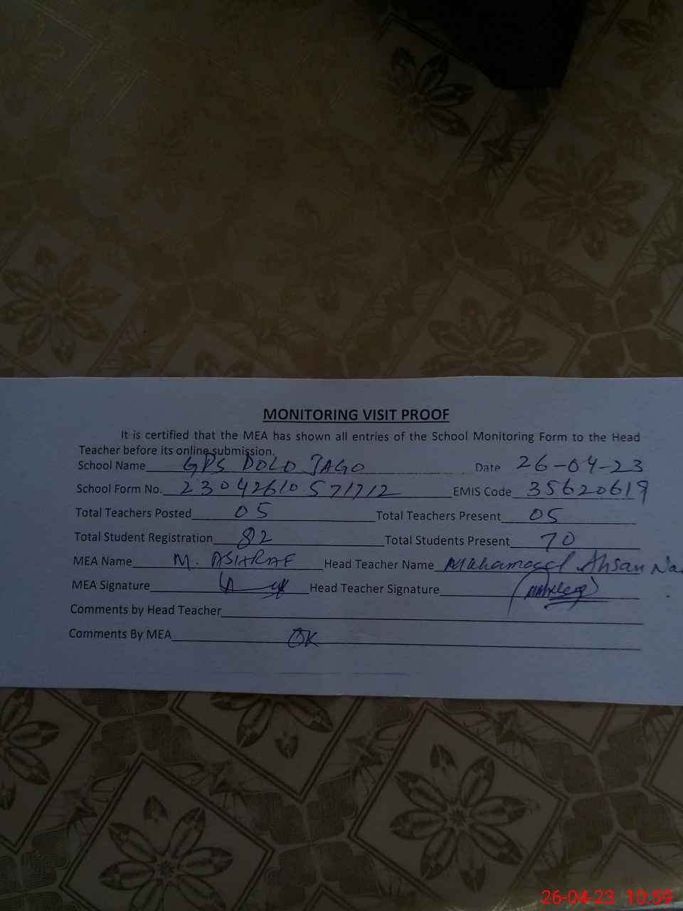 | EMIS Code: 35620619 | Name of School: GPS DOLO JAGO | |||