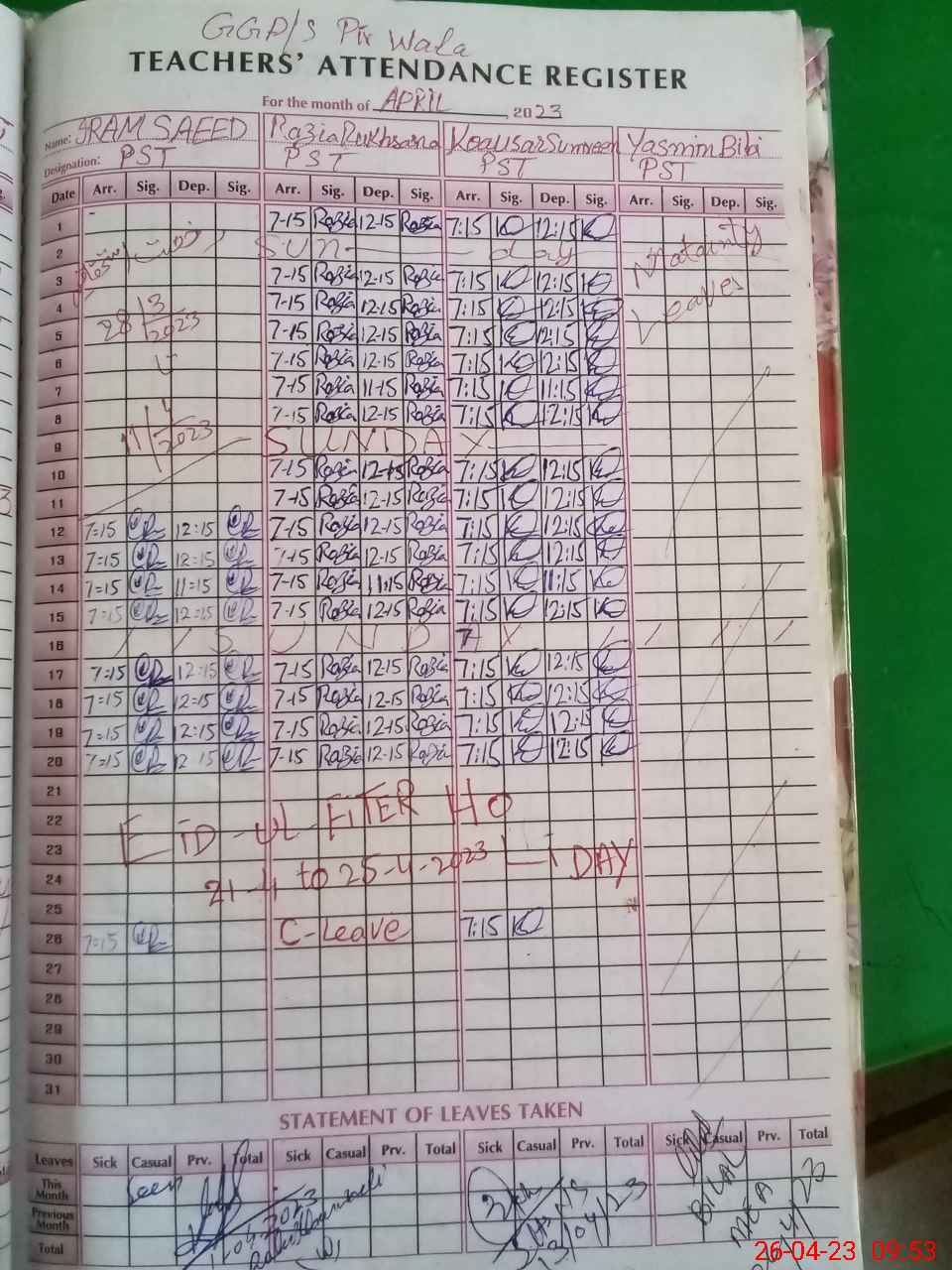 | 32**** | Ya**** Bi**** | Contract | 0 | 0 | 0 | 0 | 0 | 0 | 0 | 0 | 0 | Maternity | |