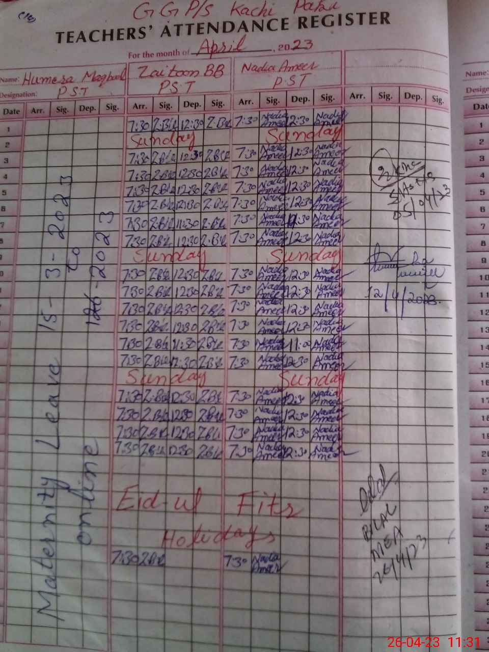 | 32**** | Hu**** Ma**** | PST | Regular | 0 | 0 | 0 | 0 | 0 | 0 | 0 | 0 | 0 | Maternity |