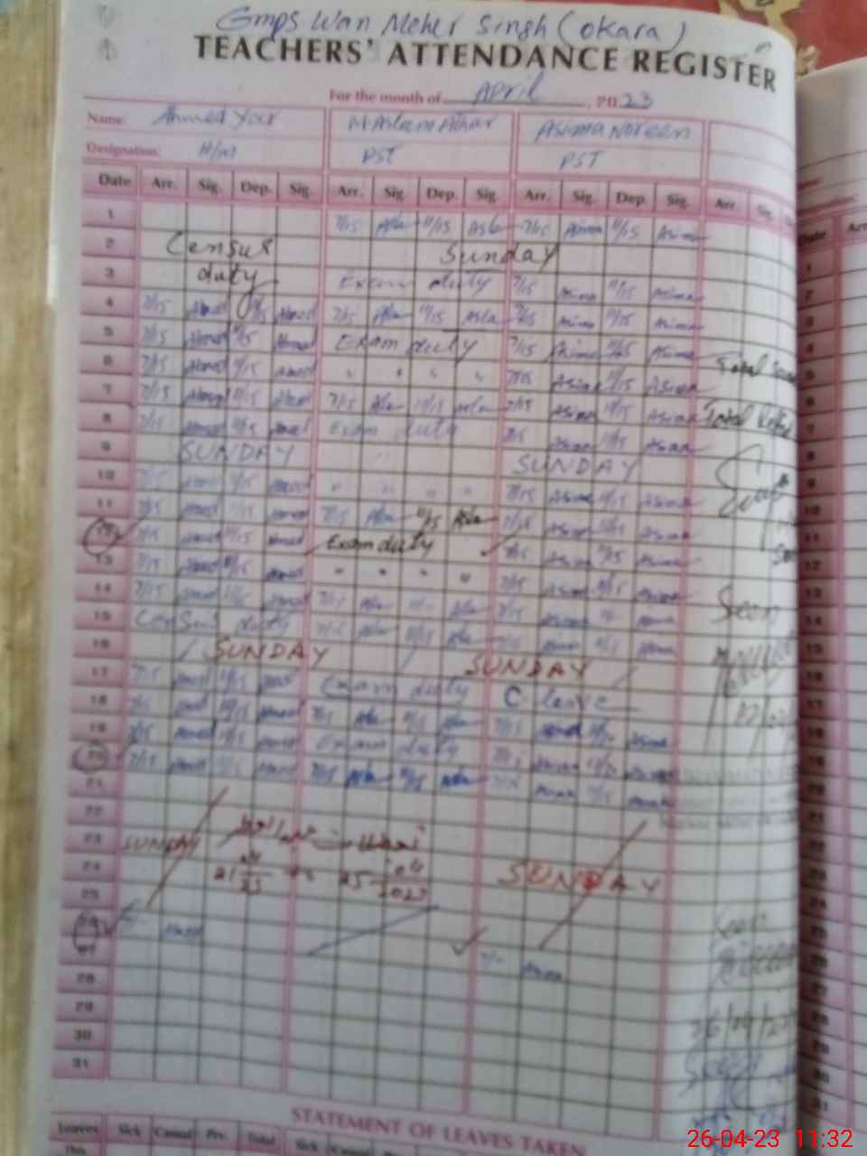 | 36**** | Mu**** As**** At**** | PST | Regular | 0 | 0 | 0 | 0 | 0 | 0 | 0 | 0 | 0 | Exam Duty |