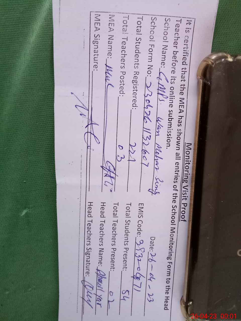 | EMIS Code: 39320471 | Name of School: GMPS WAN MEHR SINGH | |||