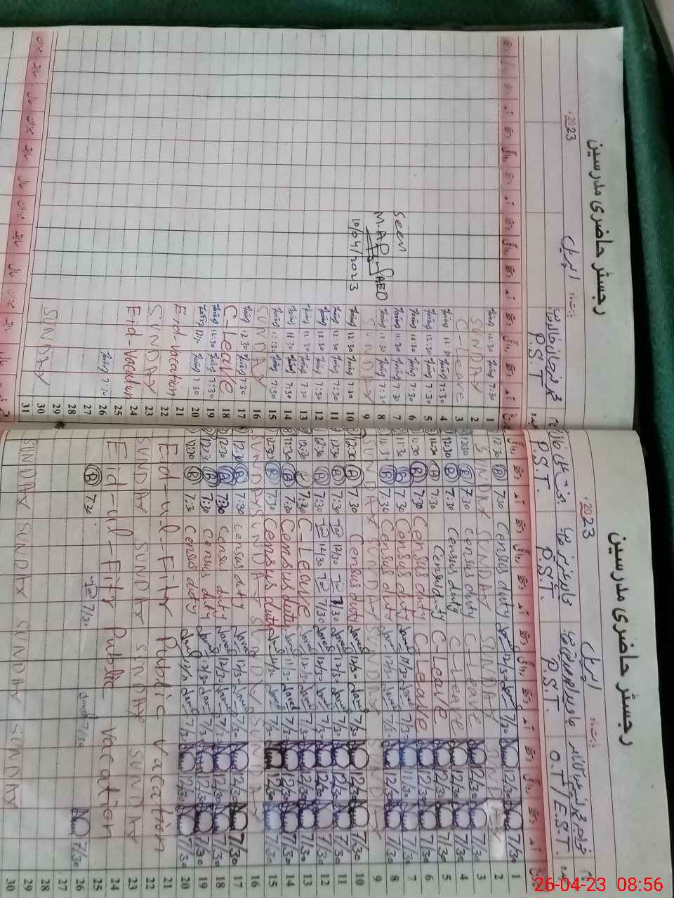| Leave | Duty | Absent | Maternity | Medical | Ex- Pak |