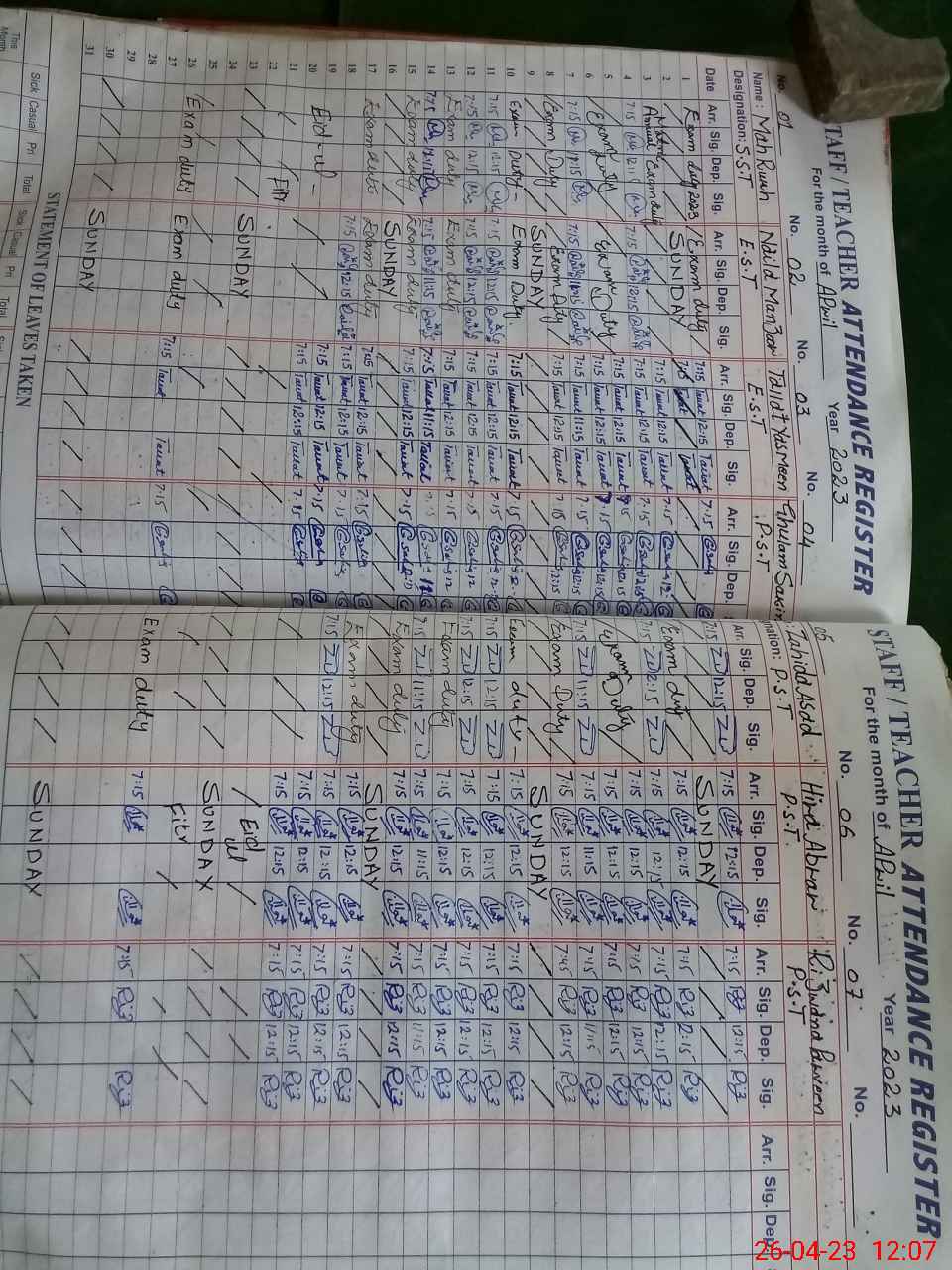 | 31**** | Ma**** Ru**** | SST | Regular | 0 | 0 | 0 | 0 | 0 | 0 | 0 | 0 | 0 | Exam Duty |