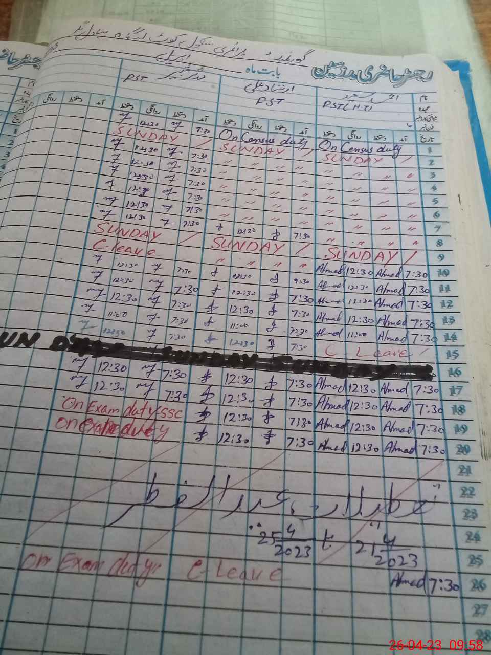 | CNIC | Full Name | Designation | R/C | Absence During Last Calender Month |