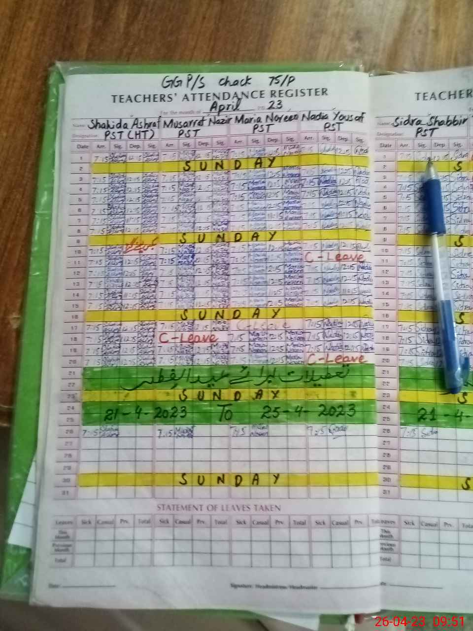 | Leave | Duty | Absent | Maternity | Medical | Ex- Pak |
