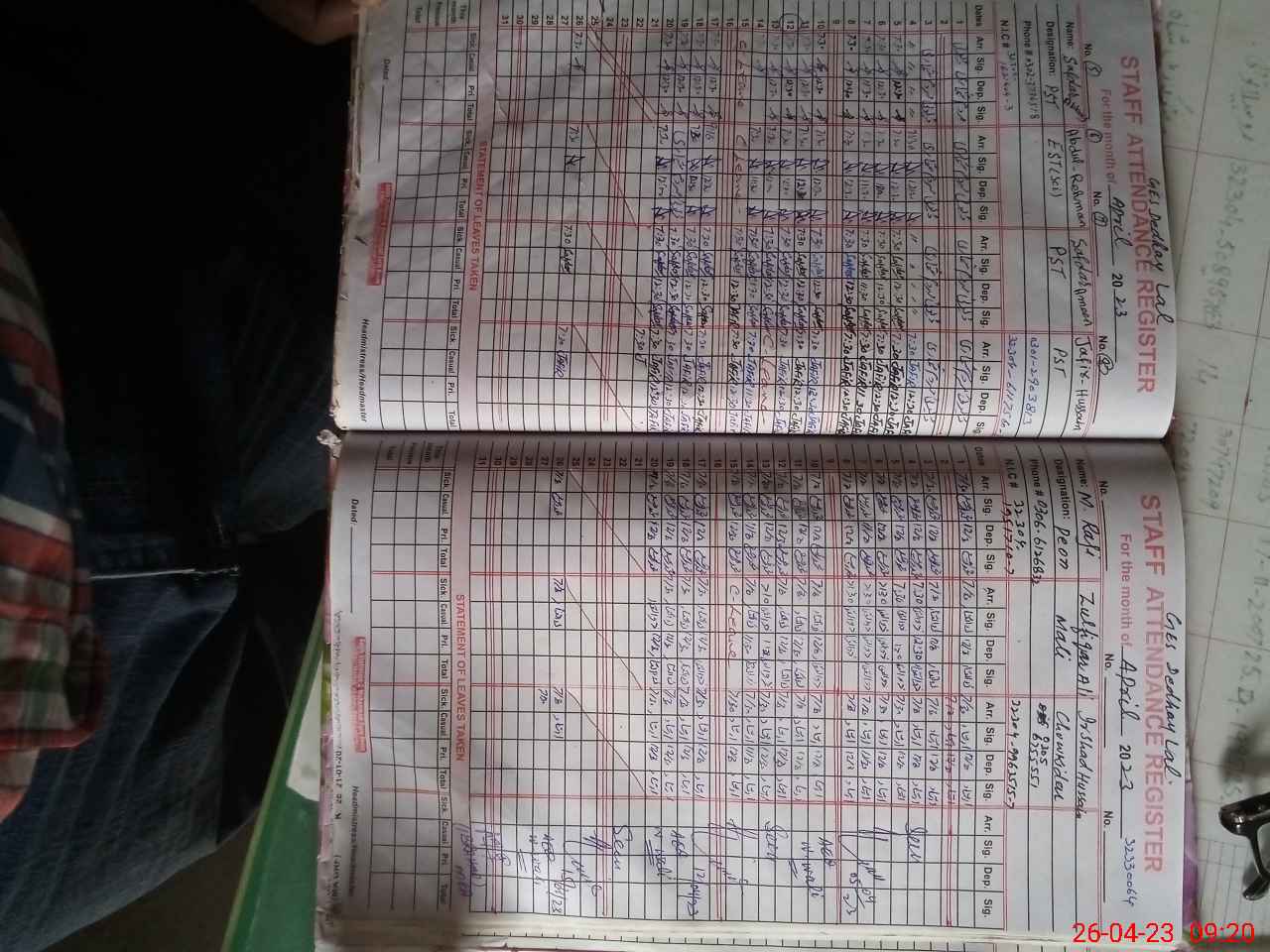 | CNIC | Full Name | Designation | R/C | Absence During Last Calender Month |