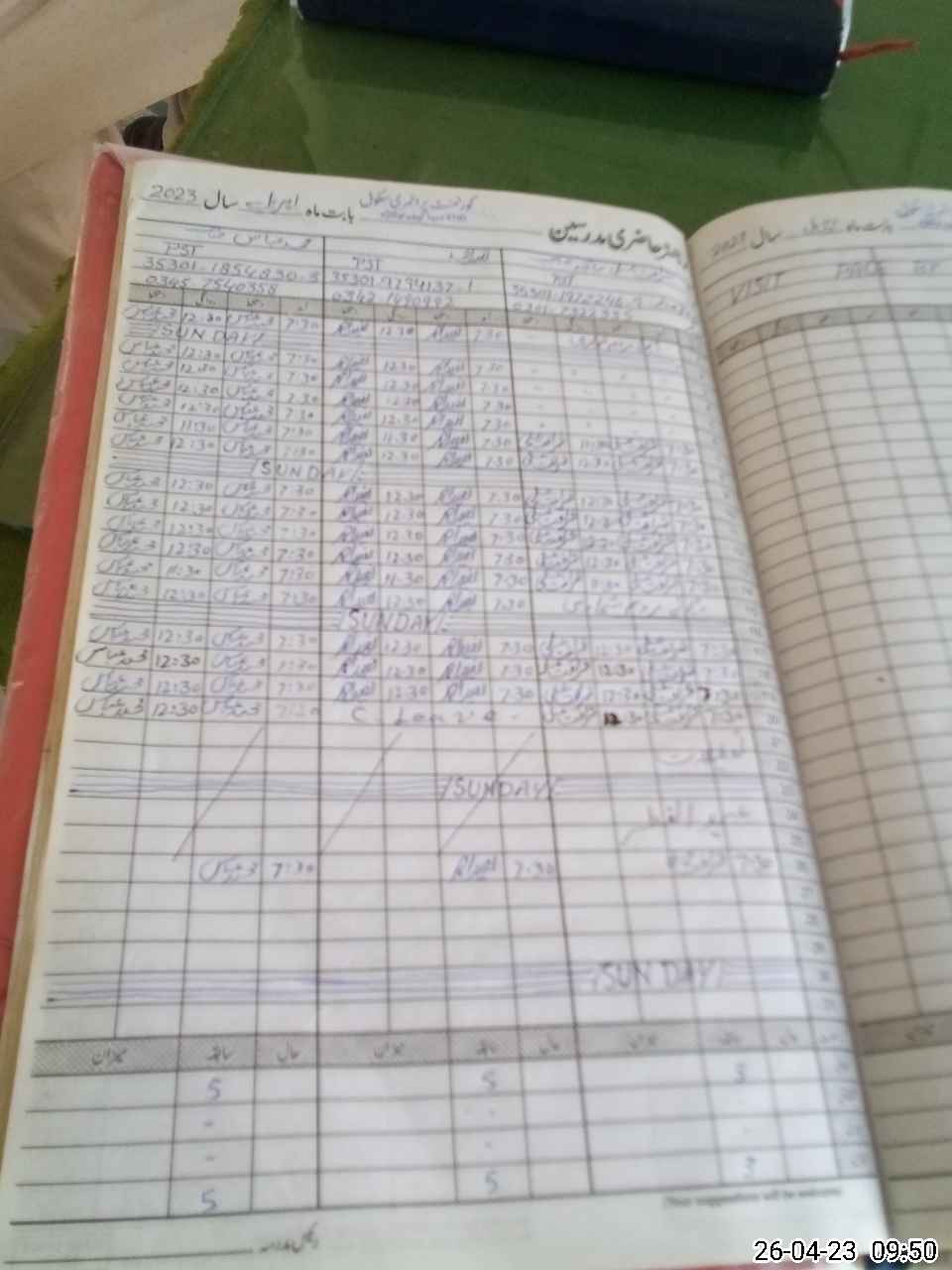 | CNIC | Full Name | Designation | R/C | Absence During Last Calender Month |