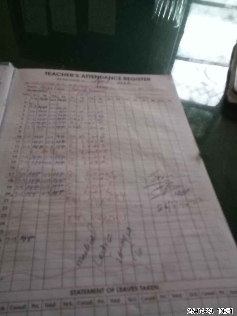 | Leave | Duty | Absent | Maternity | Medical | Ex- Pak |