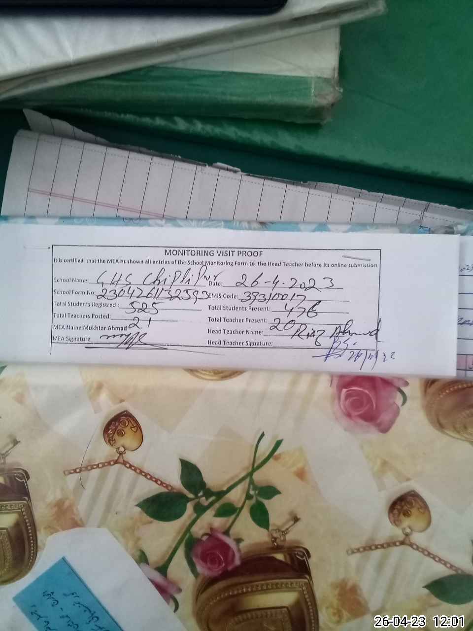 | EMIS Code: 39310017 | Name of School: GHS CHIPLI PUR | |||