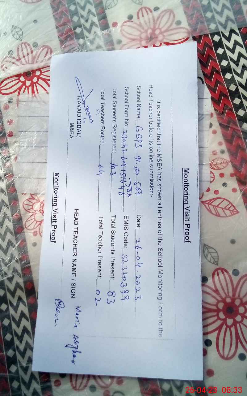 | EMIS Code: 32320399 | Name of School: GGPS CHAK NO. 569/TDA | |||