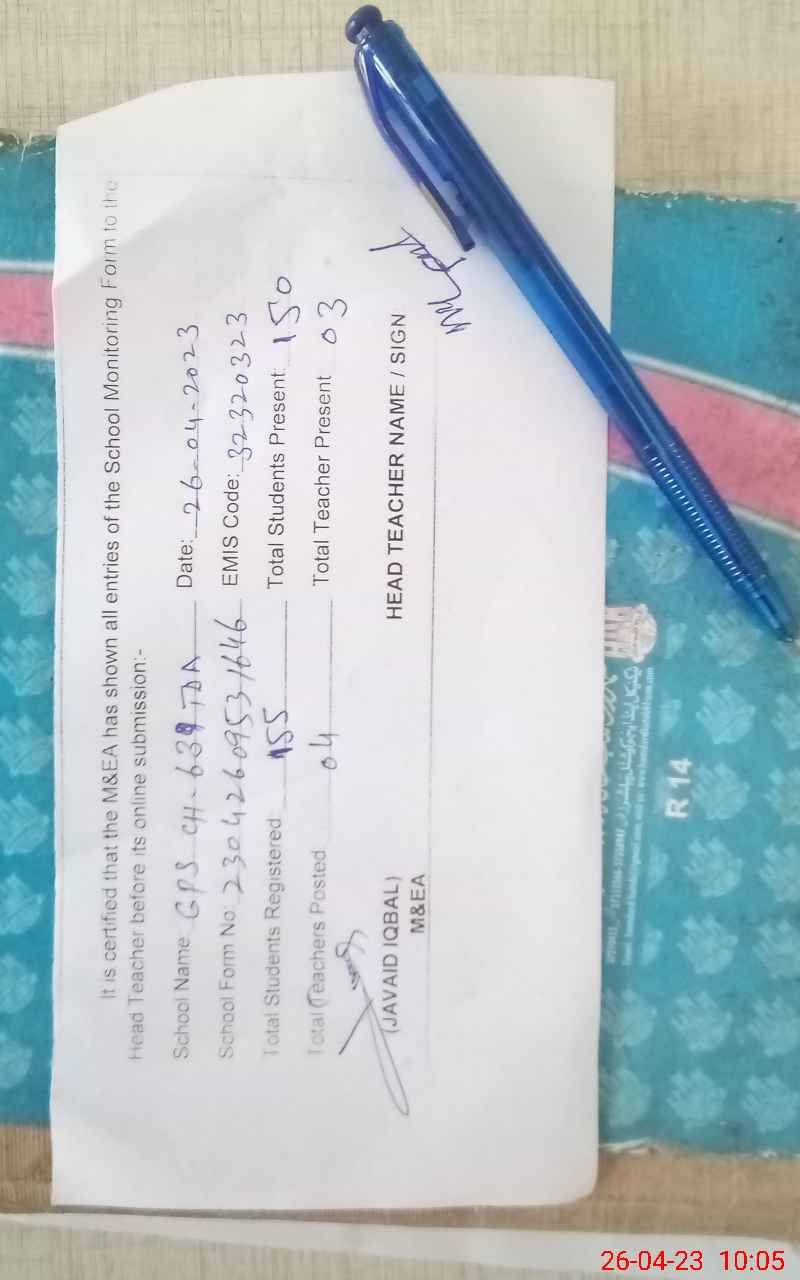 | EMIS Code: 32320323 | Name of School: GPS CHAK NO.639 TDA | |||