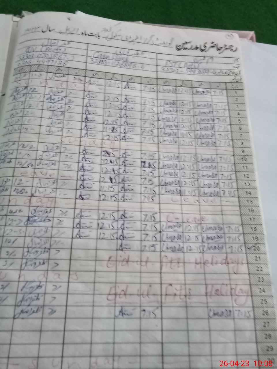 | CNIC | Full Name | Designation | R/C | Absence During Last Calender Month |