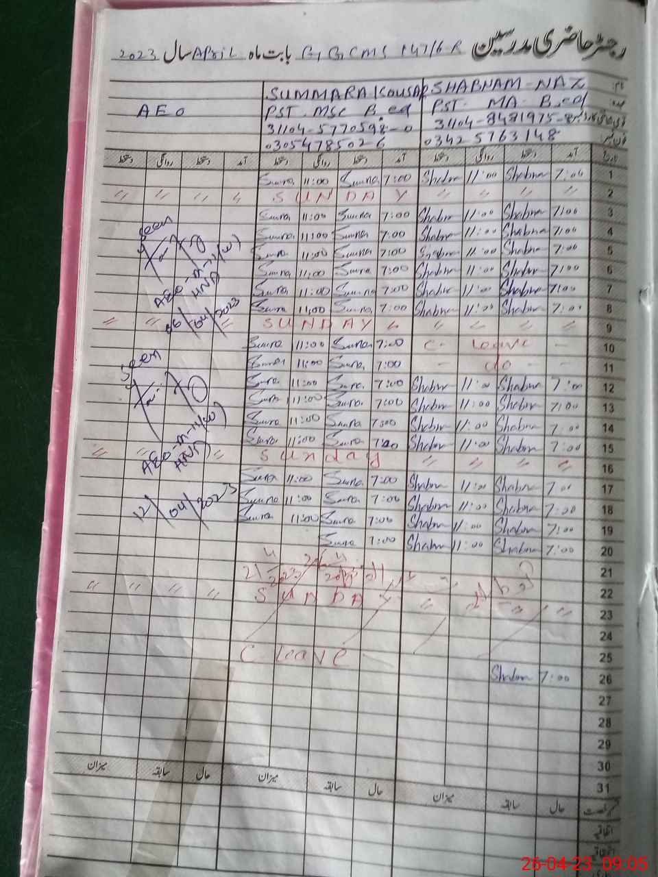 | Name: AS**** SH**** Designation: (School Headmaster's/Headmistress's) S.S.T.(ARTS) Phone/Cell Number: 03**** |