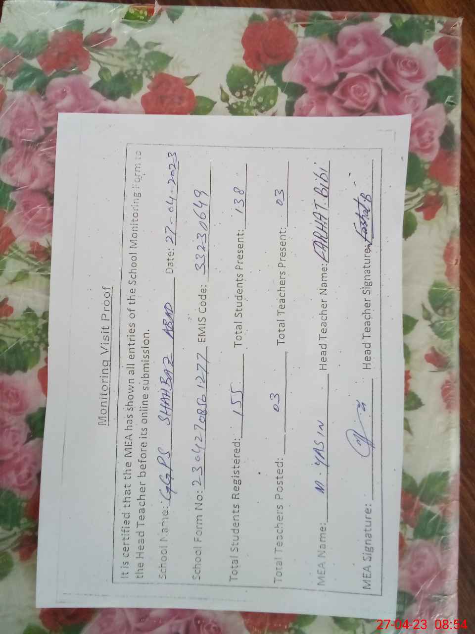 | EMIS Code: 33230649 | Name of School: GGPS SHAHBAZ ABAD | |||
