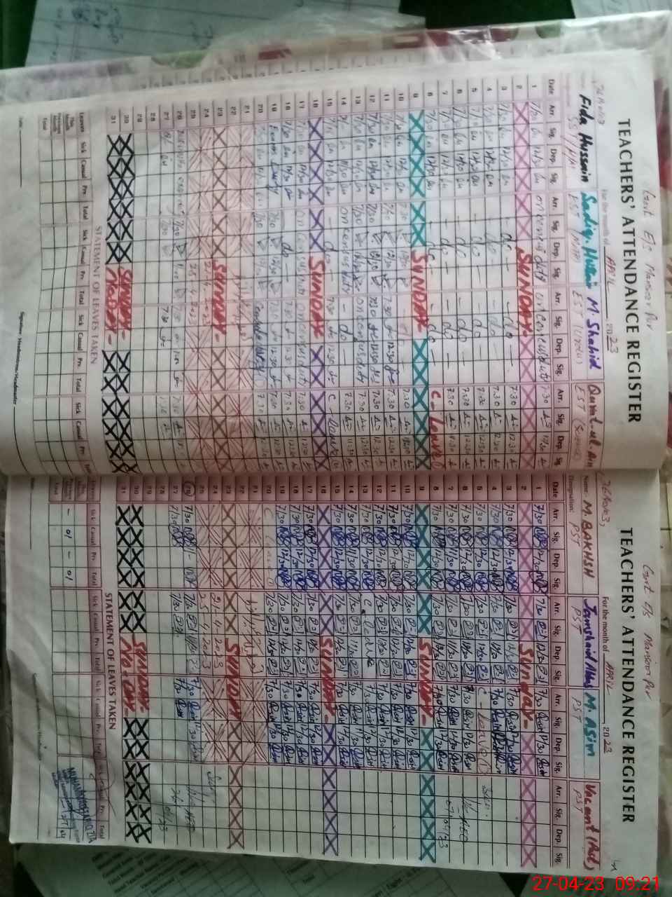 | CNIC | Full Name | Designation | R/C | Absence During Last Calender Month |