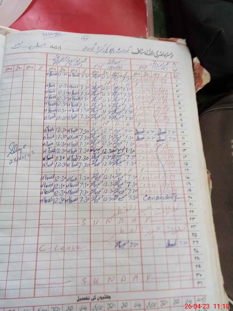 | CNIC | Full Name | Designation | R/C | Absence During Last Calender Month |