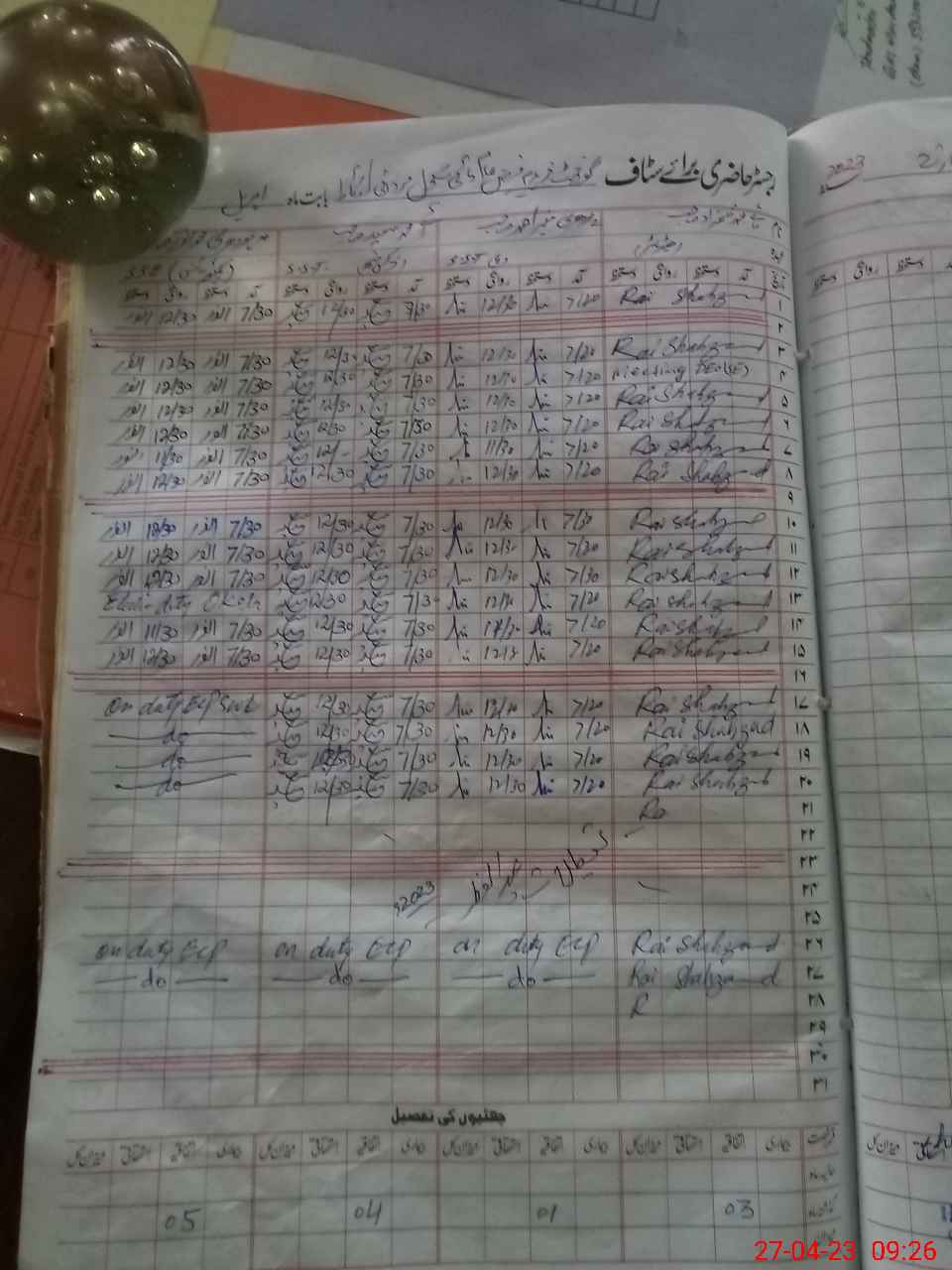 | CNIC | Full Name | Designation | R/C | Absence During Last Calender Month |