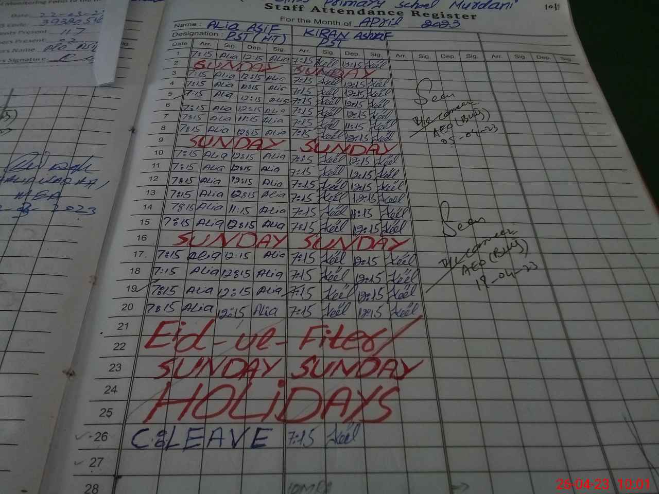 | 35**** | Al**** As**** | PST | Regular | 2 | 29 | 0 | 0 | 0 | 0 | 0 | 0 | 2 | Absent (Un-Authorized) |