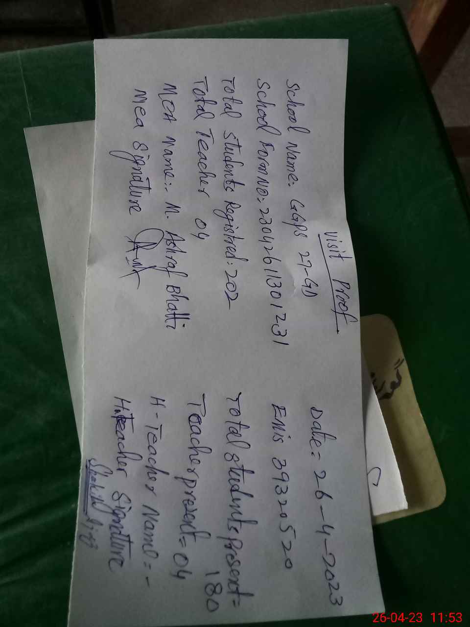 | EMIS Code: 39320520 | Name of School: GGPS 27/G.D | |||