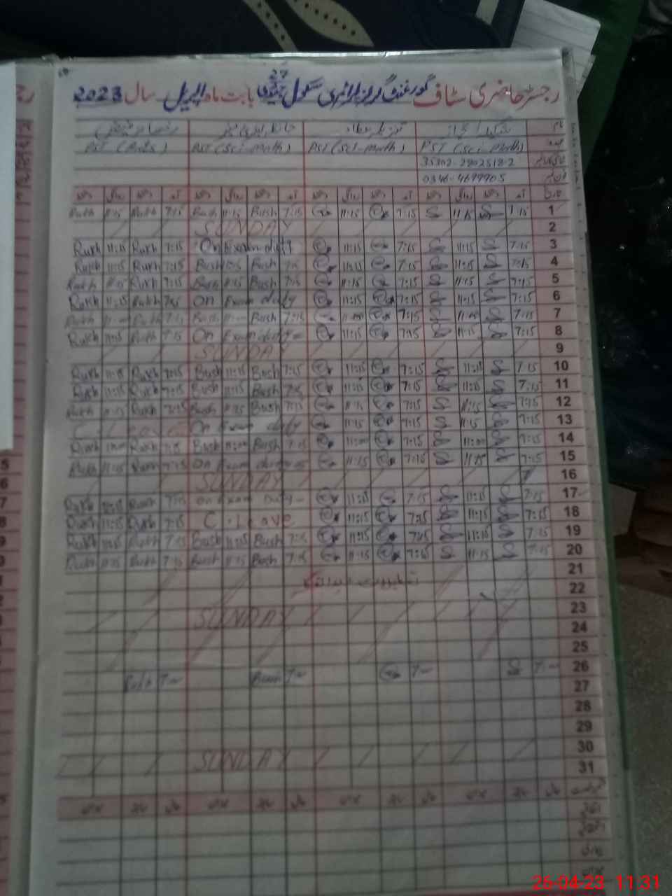 | Name: Sh**** Ej**** Designation: (School Headmaster's/Headmistress's) PST Phone/Cell Number: 03**** |
