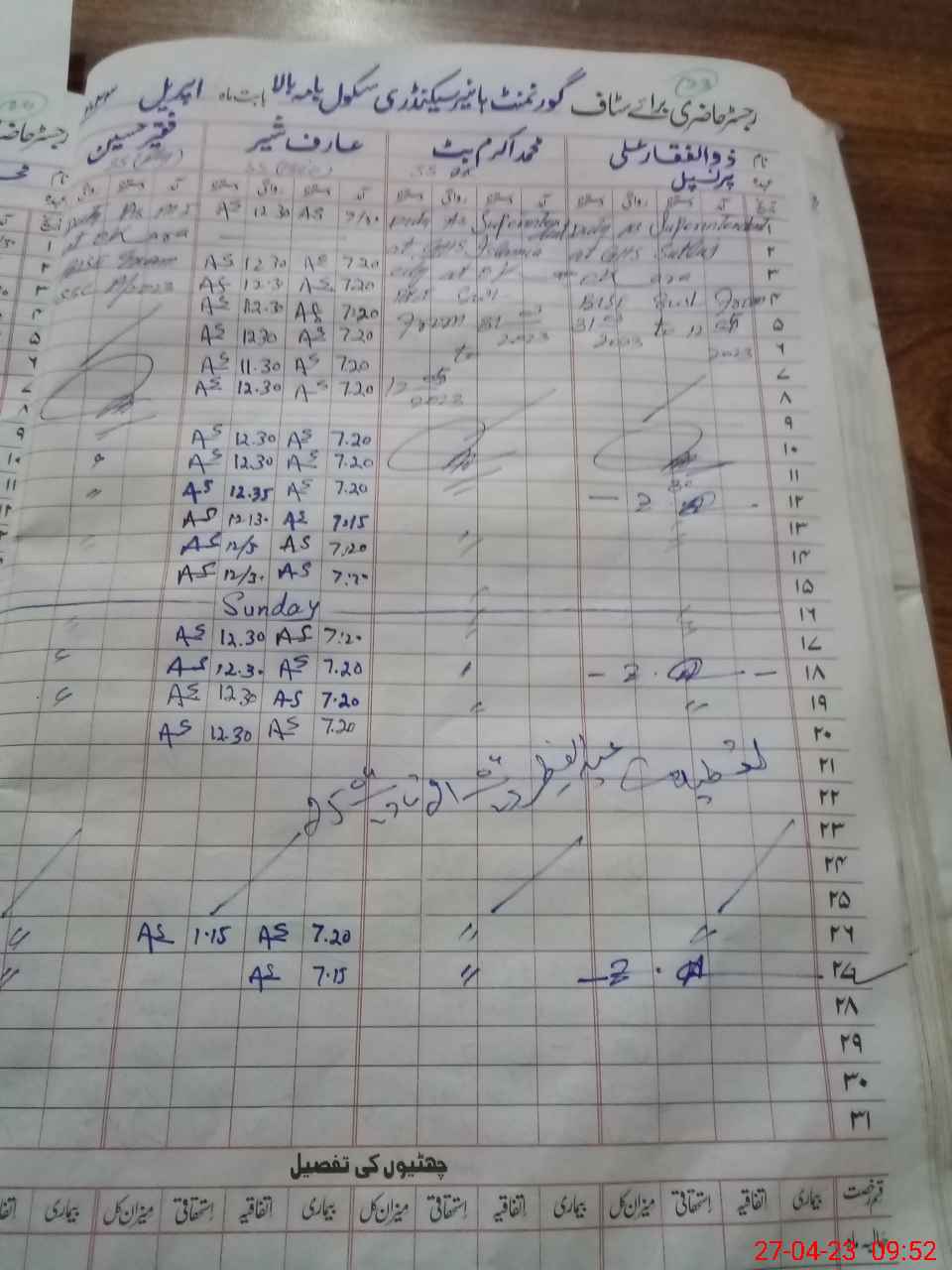 | 35**** | Mu**** Ak**** | SS | Regular | 0 | 0 | 0 | 0 | 0 | 0 | 0 | 0 | 0 | Exam Duty |