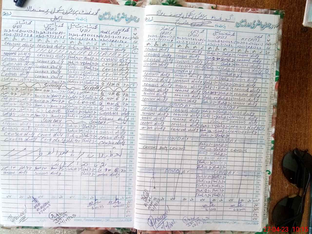| CNIC | Full Name | Designation | R/C | Absence During Last Calender Month |