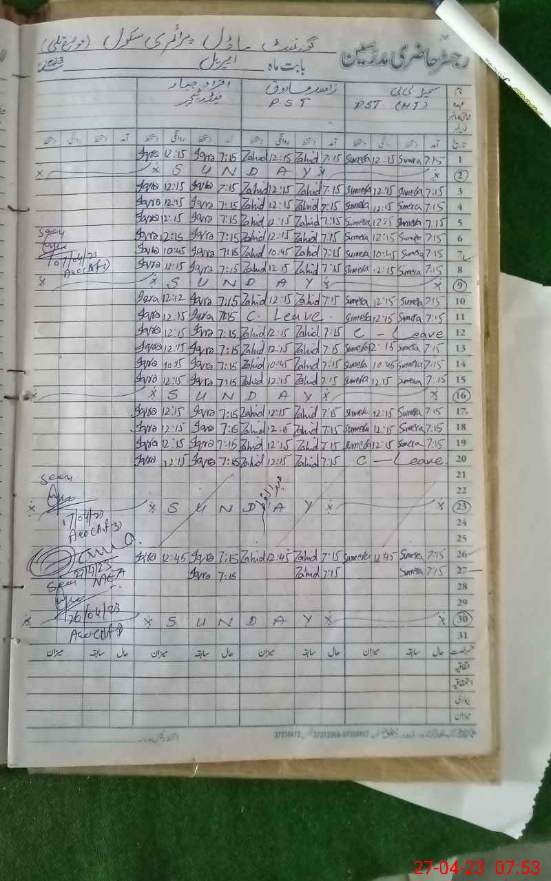 | Name: SU**** BI**** Designation: (School Headmaster's/Headmistress's) PST Phone/Cell Number: 03**** |