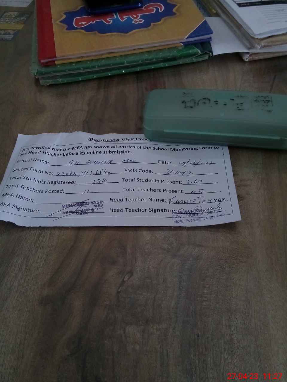 | EMIS Code: 36110113 | Name of School: GPS JAHANGIR ABAD NEAR KHANEWAL ROAD MULTAN | |||