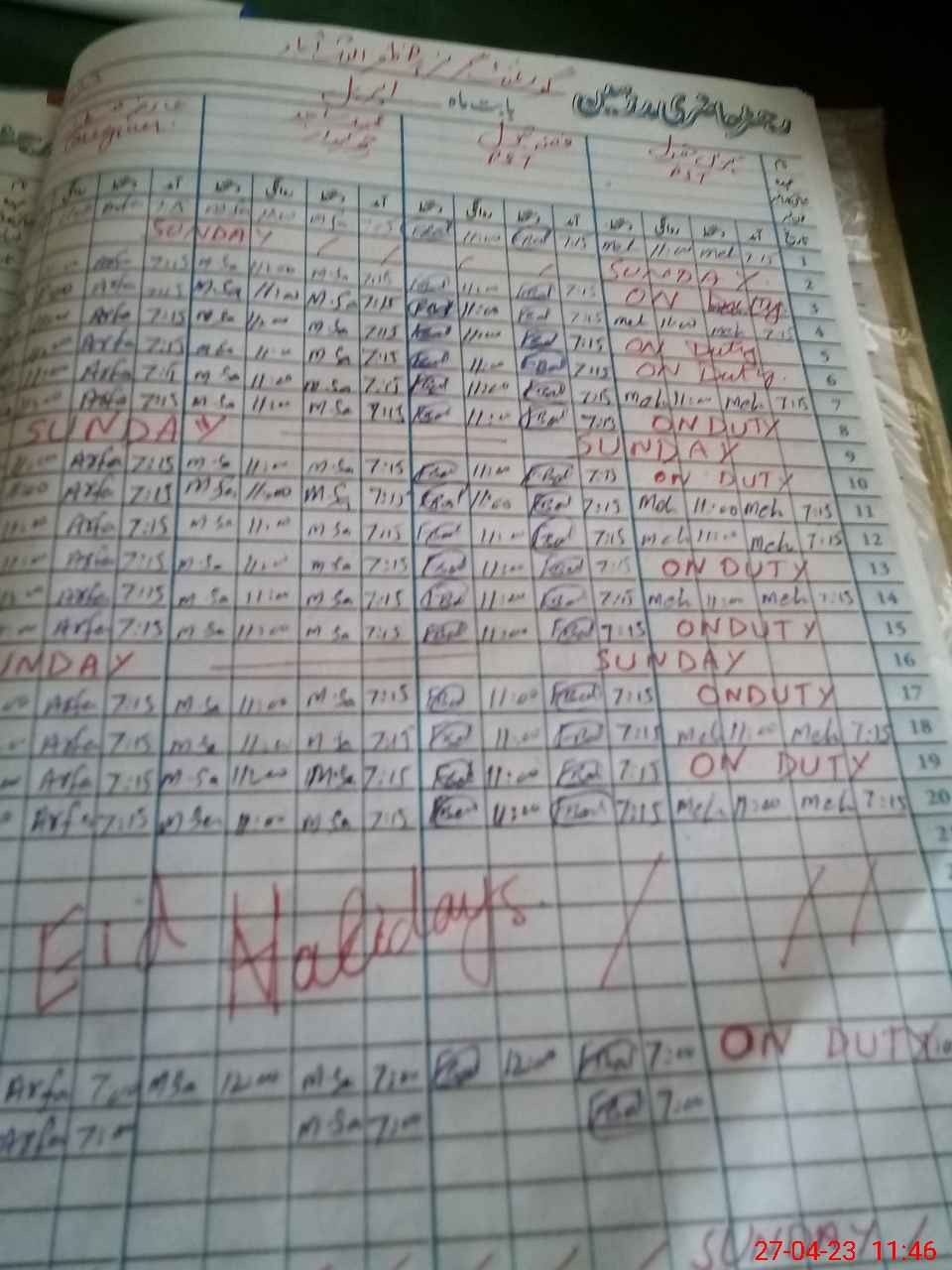 | Leave | Duty | Absent | Maternity | Medical | Ex- Pak |