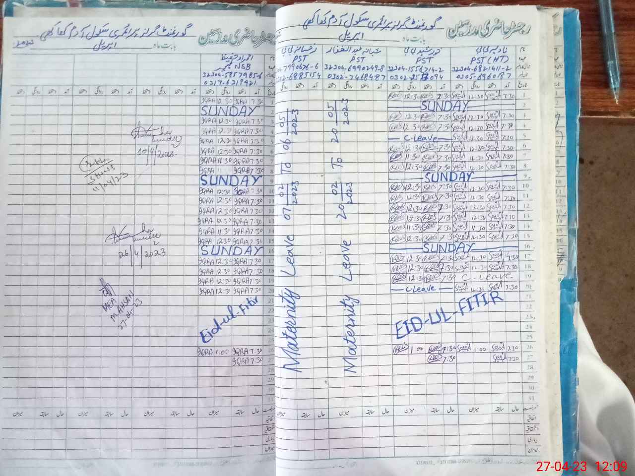 | 32**** | Sh**** Ab**** Gh**** | PST | Regular | 0 | 0 | 0 | 0 | 0 | 0 | 0 | 0 | 0 | Maternity |
