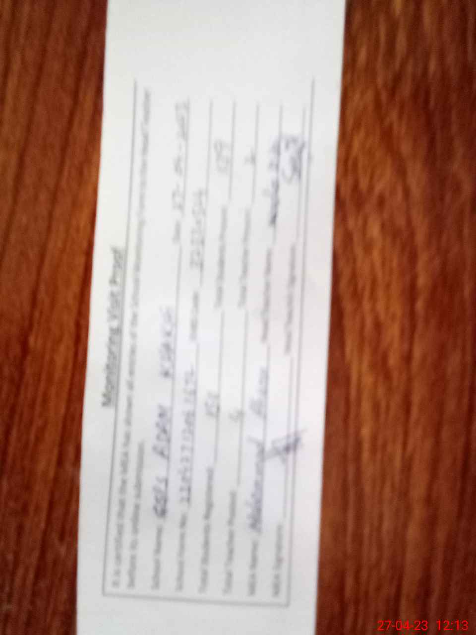 | Attendance Register | Head Teacher | MEA with School | Visit Proof |