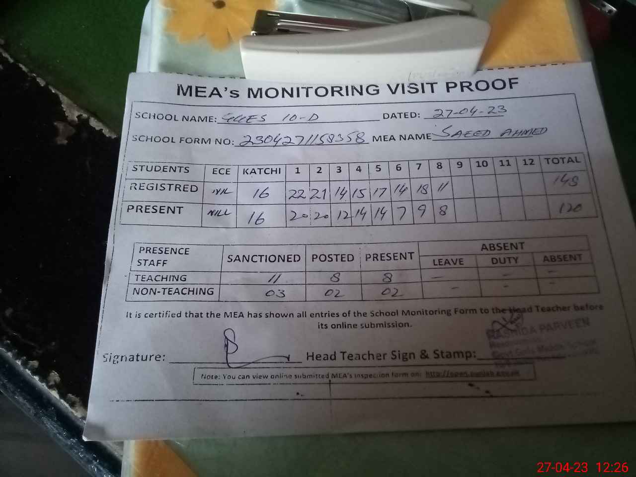 | EMIS Code: 36410143 | Name of School: GGES 10/D, ABDUL HAKIM | |||