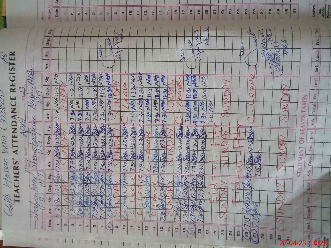 | Name: SH**** FA**** Designation: (School Headmaster's/Headmistress's) ESE Sc Phone/Cell Number: 03**** |