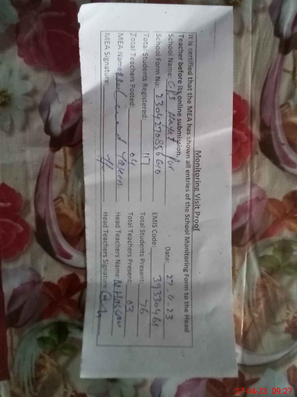 | EMIS Code: 39330461 | Name of School: GPS HAYAT PUR | |||