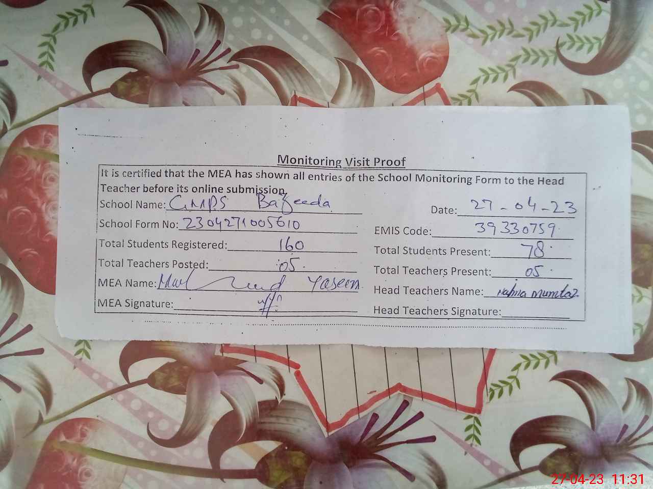 | EMIS Code: 39330759 | Name of School: GMPS CHAK BAZEEDA | |||