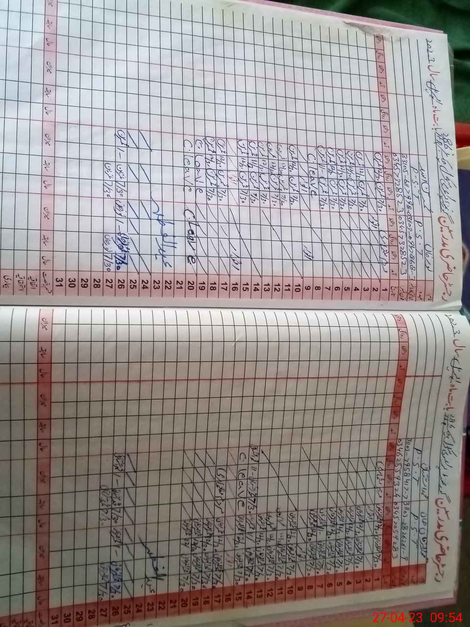 | CNIC | Full Name | Designation | R/C | Absence During Last Calender Month |
