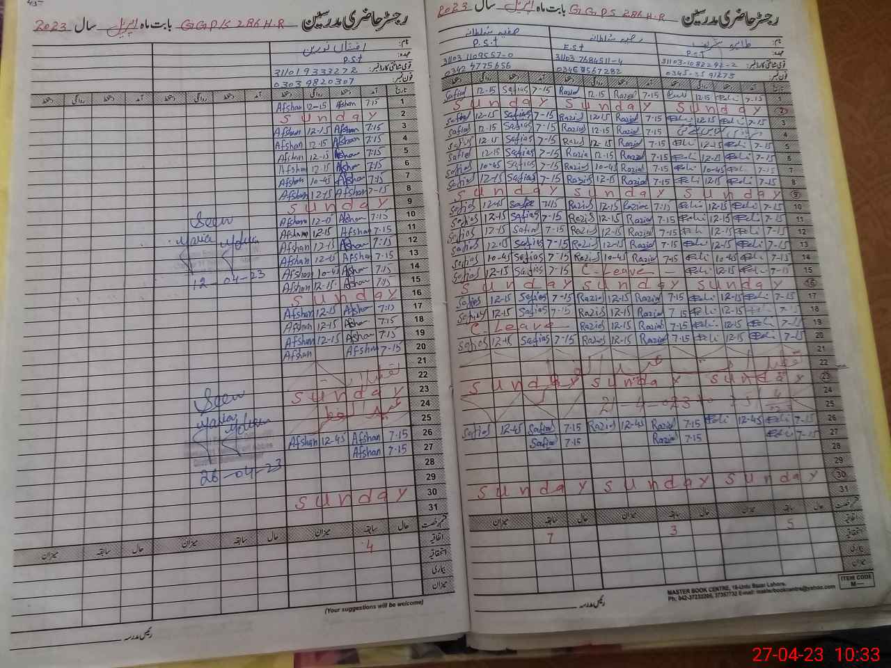 | CNIC | Full Name | Designation | R/C | Absence During Last Calender Month |