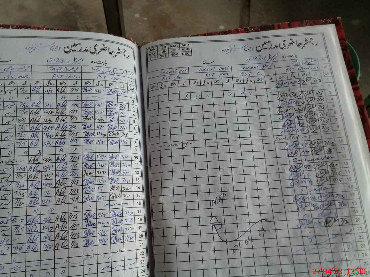 | CNIC | Full Name | Designation | R/C | Absence During Last Calender Month |