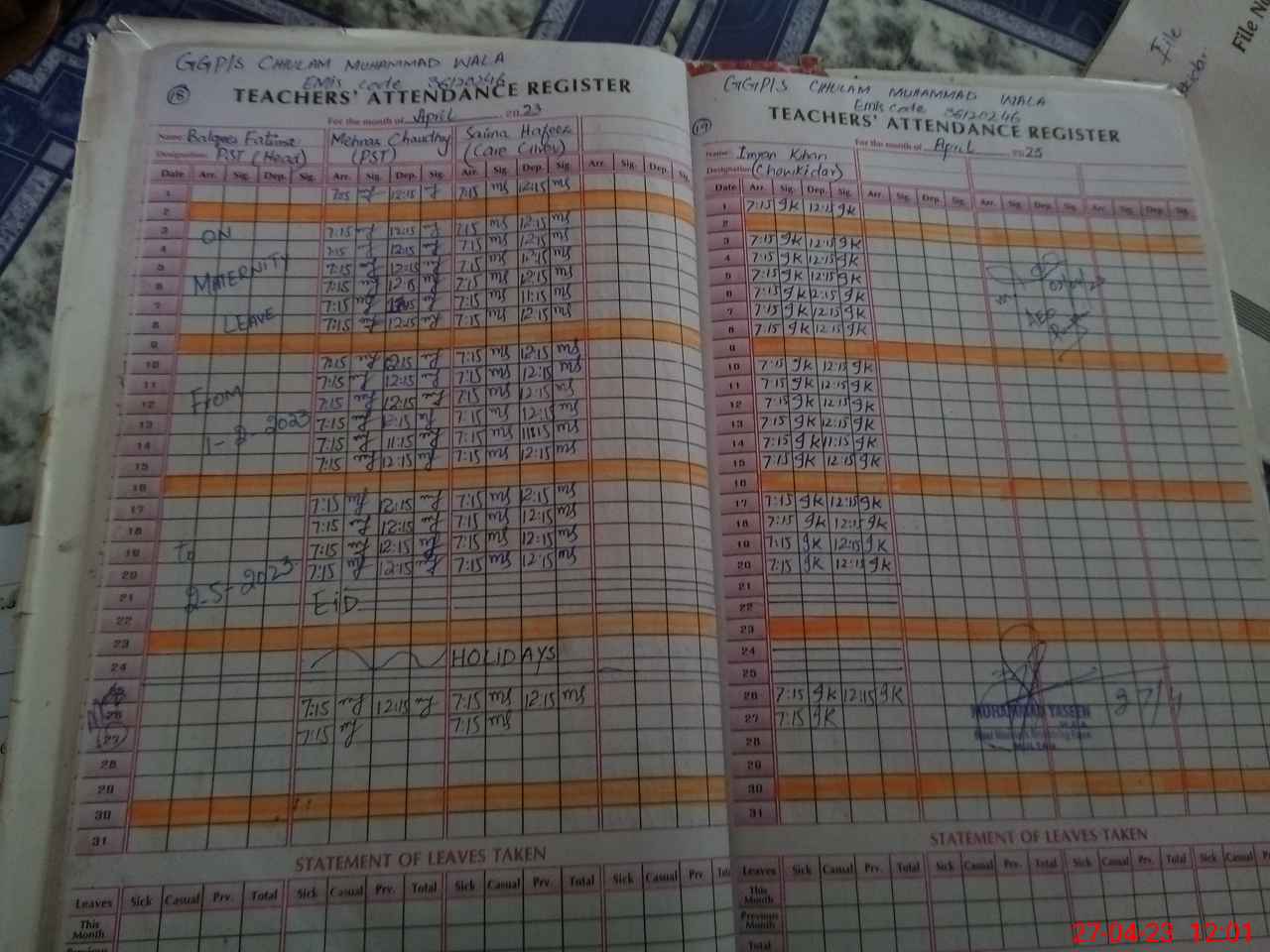 | 36**** | Ba**** Fa**** | PST | Regular | 0 | 0 | 0 | 0 | 0 | 0 | 0 | 0 | 0 | Maternity |