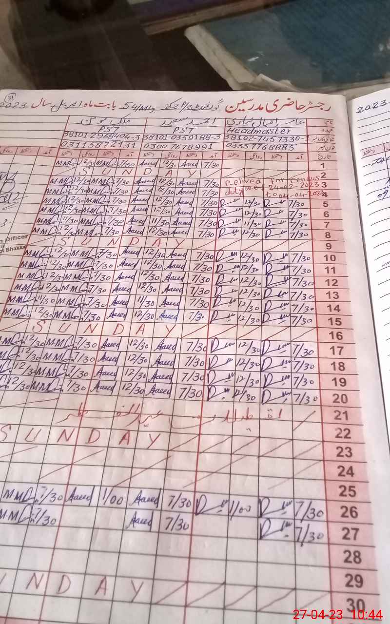 | Name: Na**** Ah**** Designation: (School Headmaster's/Headmistress's) PST Phone/Cell Number: 03**** |