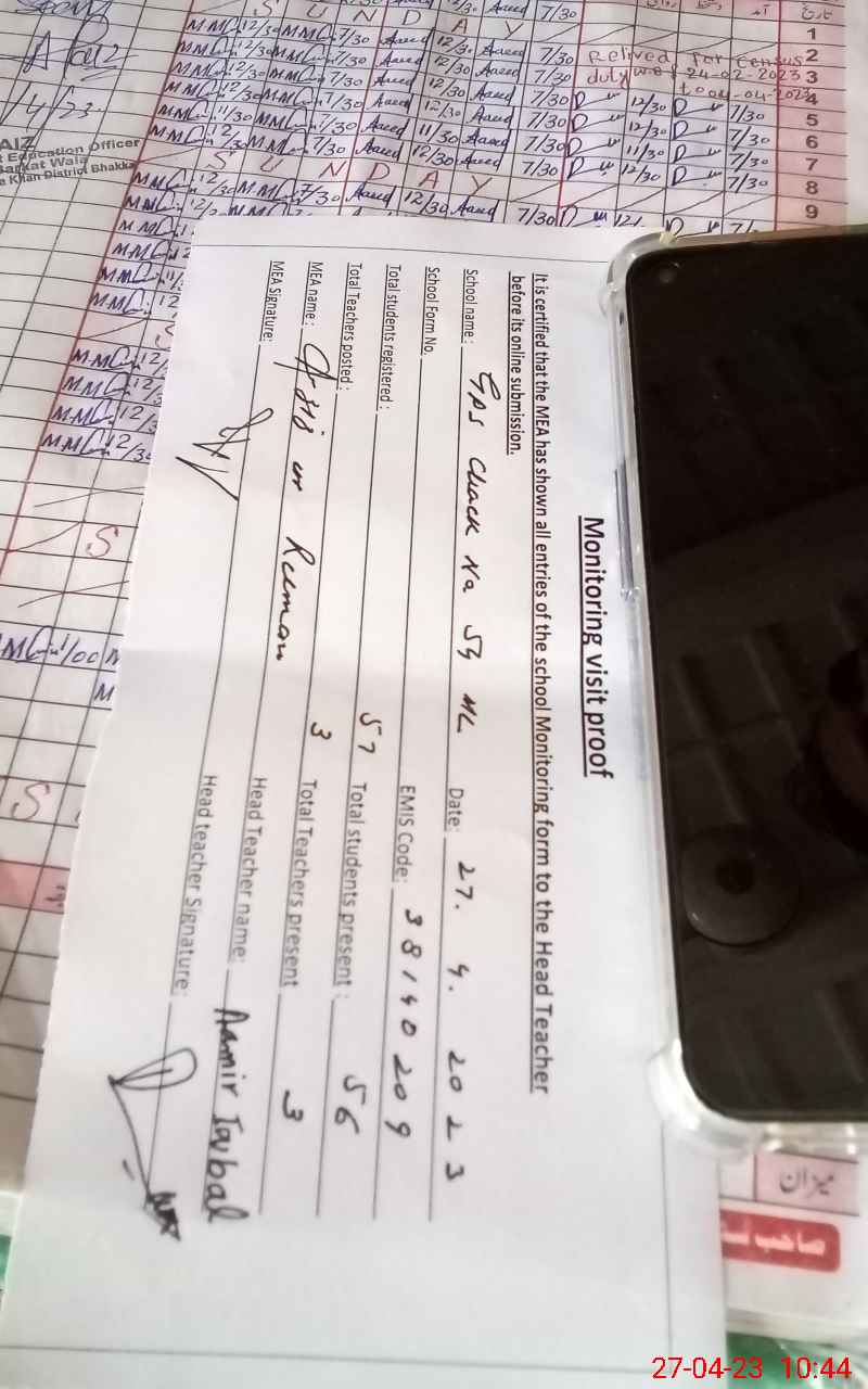 | Attendance Register | Head Teacher | MEA with School | Visit Proof |