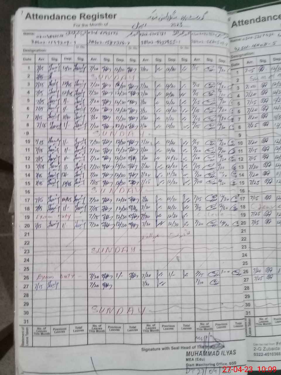 | Name: SA**** HU**** Designation: (School Headmaster's/Headmistress's) PST Phone/Cell Number: 03**** |