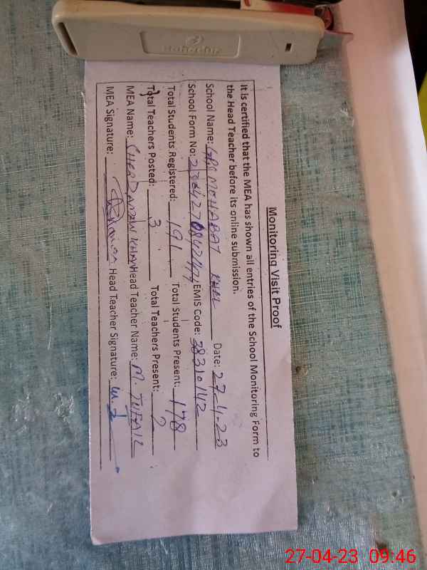| EMIS Code: 38310142 | Name of School: GPS MOHABAT KHEL | |||