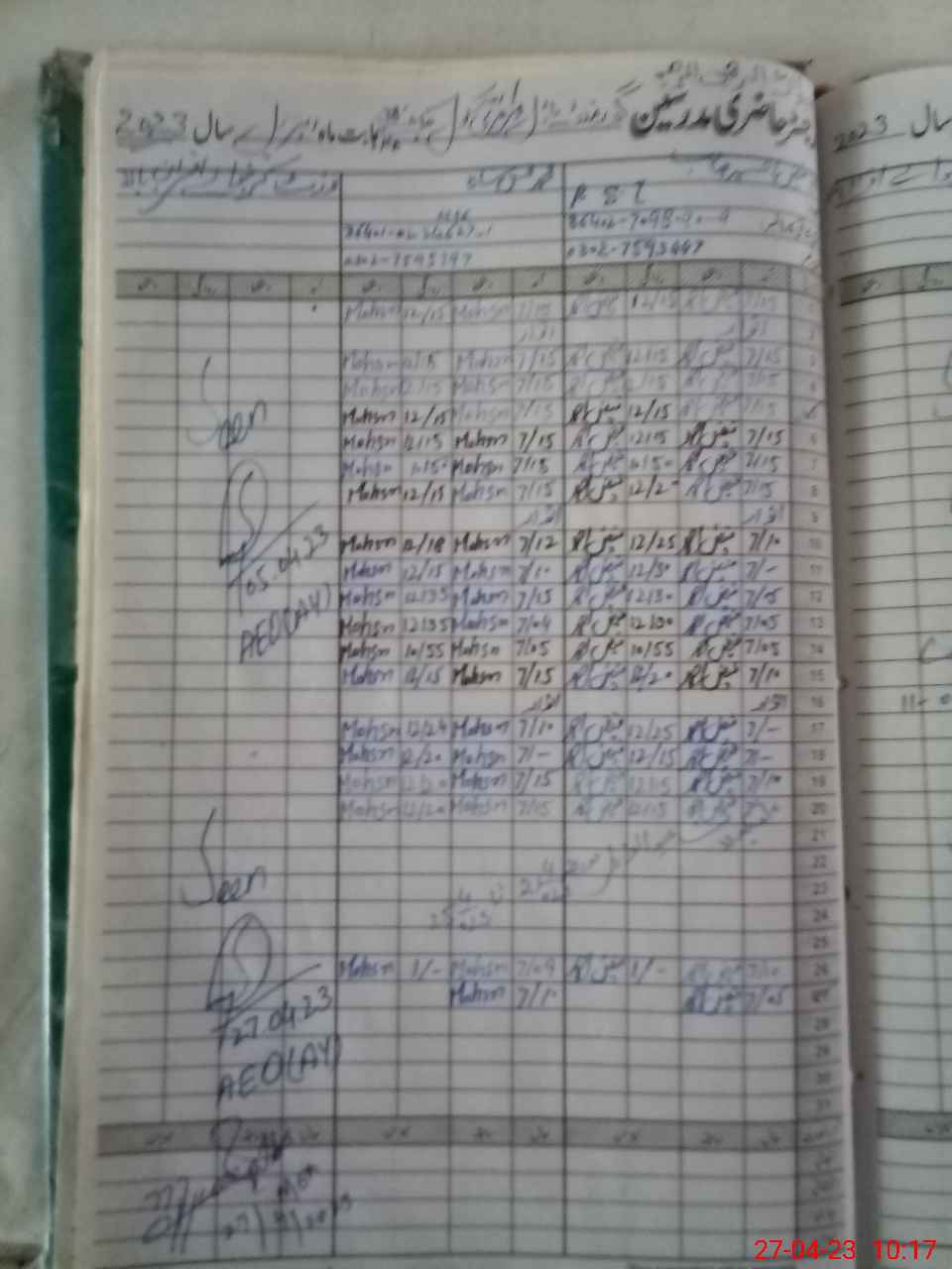 | CNIC | Full Name | Designation | R/C | Absence During Last Calender Month |