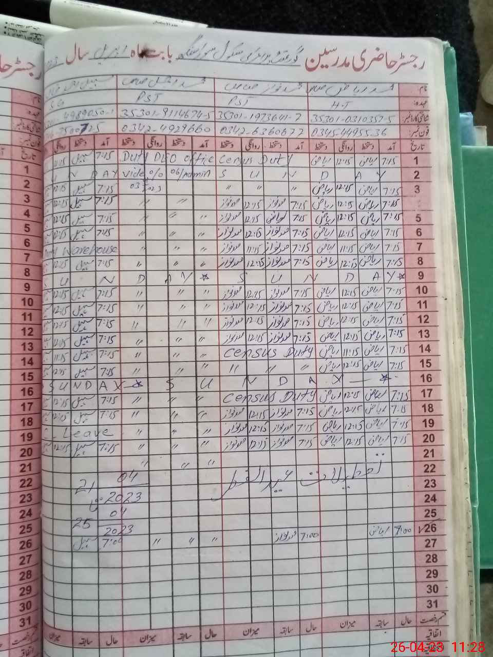 | Name: Mu**** Ri**** Designation: (School Headmaster's/Headmistress's) PST Phone/Cell Number: 03**** |