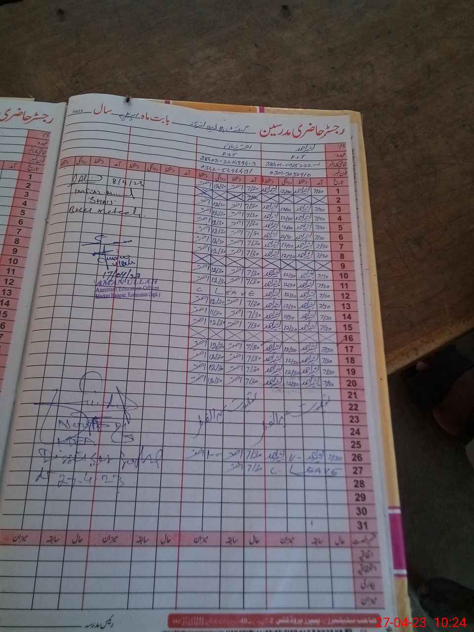 | Name: BA**** AH**** Designation: (School Headmaster's/Headmistress's) PST Phone/Cell Number: 03**** |