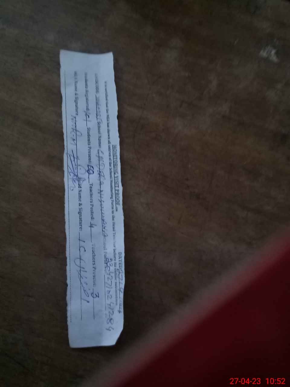 | Attendance Register | Head Teacher | MEA with School | Visit Proof |